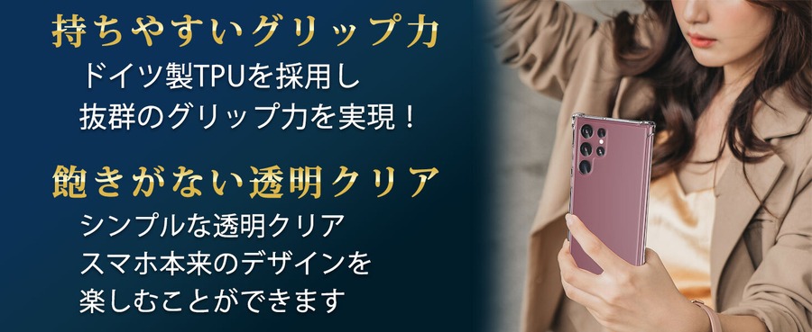 Galaxy S22 Ultra SC-52C SCG14用耐衝撃ケースは衝撃吸収ポケットを備え米軍MIL規格をクリア。しっかりガードします。ストラップホール付きで落下防止にも役立ちます。