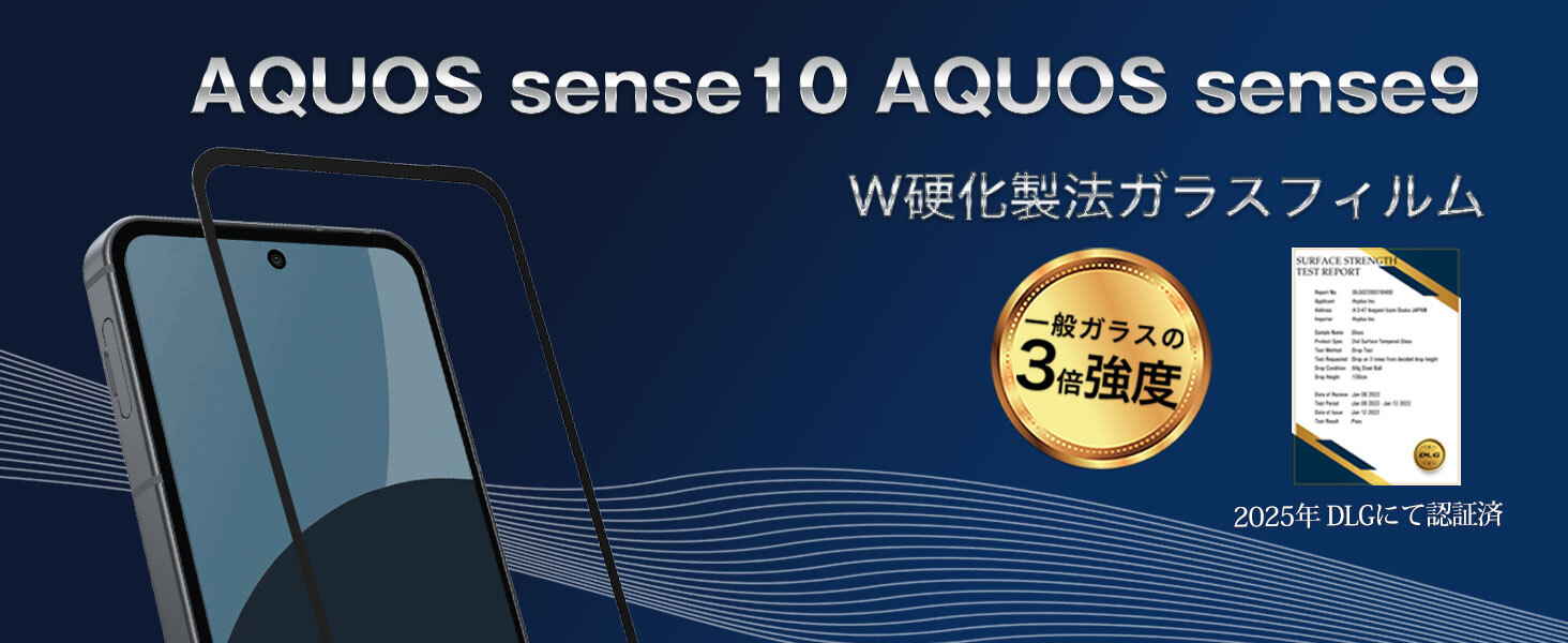 3倍強度!AQUOS sense10 AQUOS sense9 全面保護ガラスフィルム。W効果製法で強度をアップ!エッジ部分が丸みを帯びているラウンドカットタイプ。180日完全保証付き